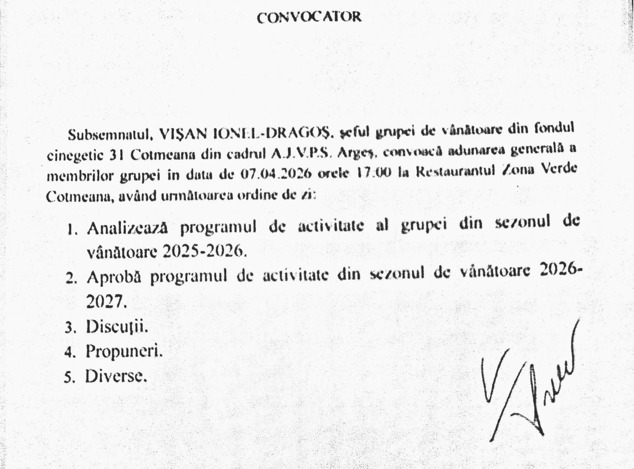 Convocator Adunare Generala 2026 – GRUPA 31 Cotmeana